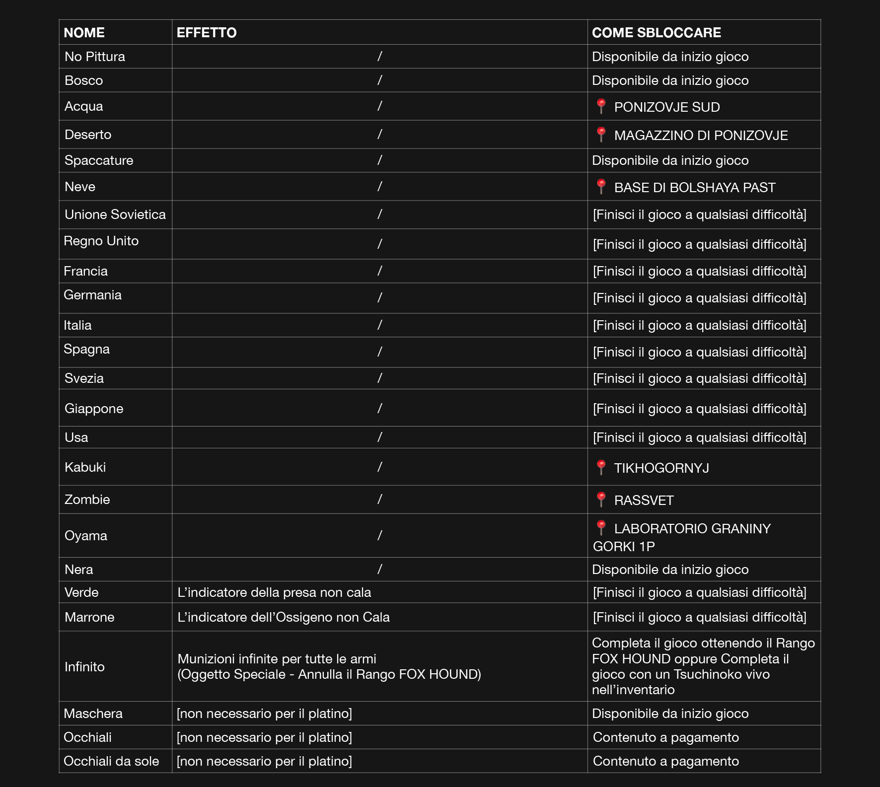 _ Oggetti speciali usati : 0 (Mimetica ottica, Pittura facciale Infinito, Pistola EZ)